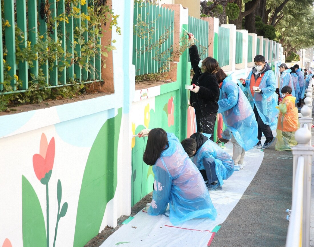 ■ 11월 26일 안양 관양초등학교, 대전 용전초등학교 등 2개 학교에서 벽화 그리기 봉사 펼쳐