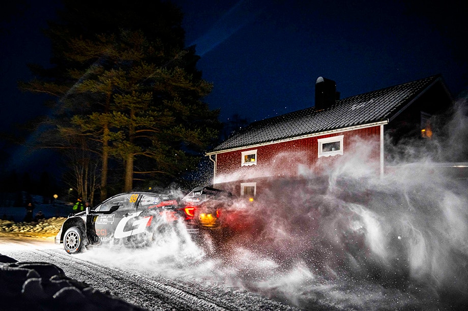 1950년부터 진행되고 있는 스웨덴 랠리(Rally Sweden)는 눈과 얼음 위에서 열리는 유일한 WRC 이벤트입니다. 2022년, 더 나은 겨울 조건을 고려해 우메오(Umeå)로 장소를 이전한 이 랠리에서 드라이버들은 코너를 돌 때 기록을 위해 눈더미를 활용하지만, 기온이 높을 경우에는 위험한 선택이 될 수 있습니다. 스터드 타이어는 뛰어난 그립력을 제공하지만, 핸들링이 까다롭고 노출된 자갈이 스터드를 손상시킬 수 있습니다. -25°C 이하의 극한의 기온은 미캐닉들의 유지보수를 어렵게 만듭니다.